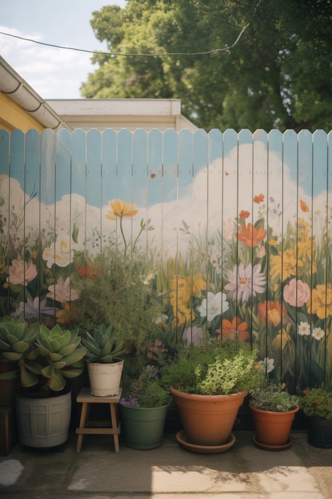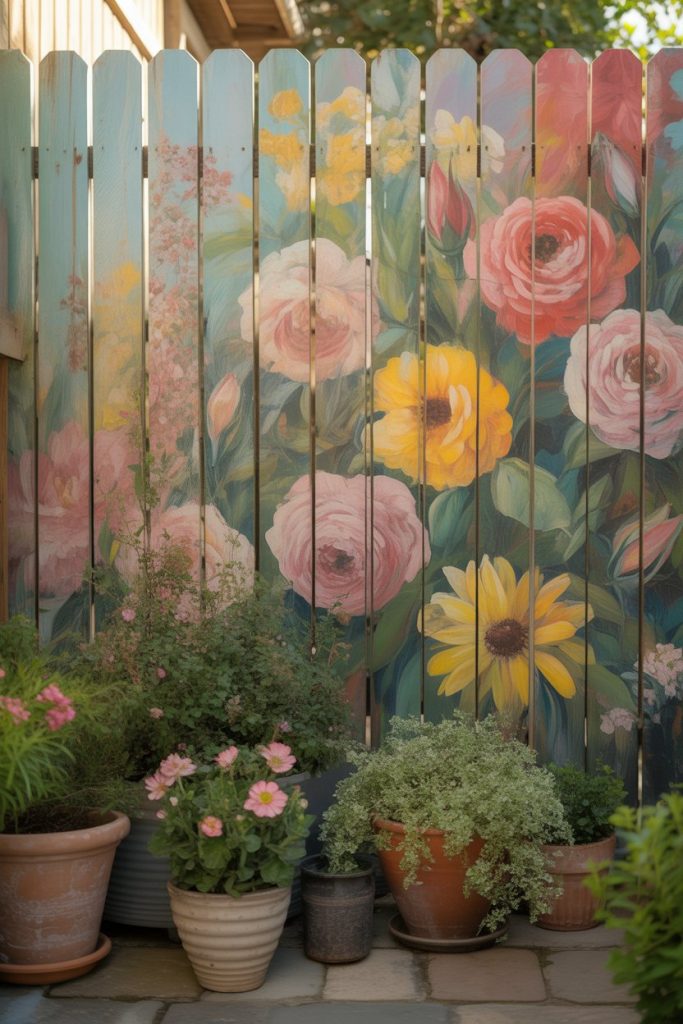 For renters or those with limited planting space, consider a painting-style mural on a fence or wall as a backdrop for container gardens. Commission a local artist or DIY with outdoor paint to create a floral scene that complements your real blooms. This trend is catching on in urban areas where yard space is tight but creativity is limitless. The background adds color and interest year-round, even when plants are dormant. Pair it with potted flowers in similar hues for a cohesive, layered look.