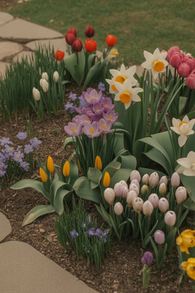 Expert gardeners recommend planting bulbs at three different depths—shallow for small early bulbs, medium for tulips, and deep for alliums—in the same hole or trench. This creates a stacked effect where something is always blooming from March through May. After the show is over, interplant with annuals or let perennials fill in the gaps. It’s a small upfront investment—about $50–$80 for a well-layered bed—that delivers outsized impact.