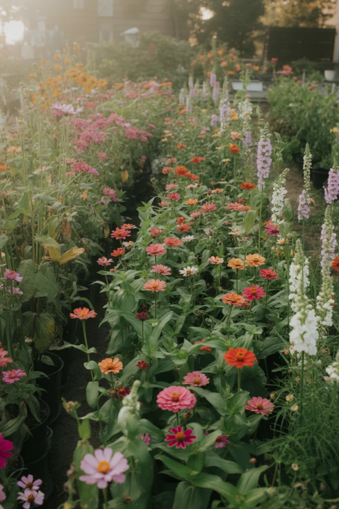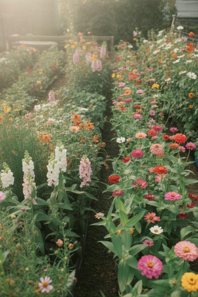 A cottage-style cutting garden is all about abundance—rows of zinnias, snapdragons, and cosmos planted closely for easy harvesting. Unlike ornamental beds, this setup prioritizes productivity over aesthetics, though it often ends up looking charming in a messy, overflowing way. The inspiration comes from English cottage gardens, but the plant choices can be adapted to any American climate. This is perfect for anyone who loves fresh bouquets and wants to reduce grocery store flower bills.
