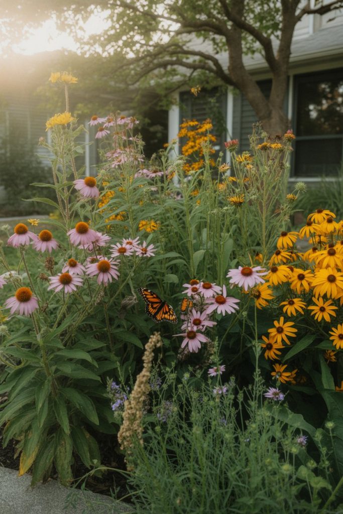 Transform the typical in front of house lawn into a flowering native pollinator haven that’s low-maintenance and high-impact. Choose region-appropriate plants like purple coneflower, milkweed, and black-eyed Susan that feed bees, butterflies, and hummingbirds. This trend is gaining traction nationwide as homeowners wake up to the ecological benefits—and cost savings—of replacing turf with natives. The beautiful bonus is that these gardens look stunning while requiring a fraction of the water and chemical inputs of traditional landscaping.