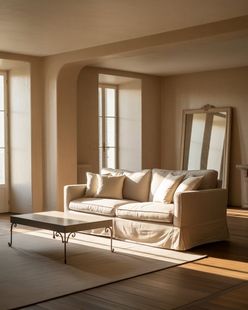 The soul of French country design lies in the mix of old and new, and nowhere is this more apparent than when you pair vintage architectural salvage with freshly upholstered seating. Hunt for antique decor pieces at estate sales—carved brackets, iron gates, weathered shutters—and use them as art. Then ground the room with a new sofa in durable linen or Belgian cotton that can withstand daily life. This approach gives you the patina of age where it matters most while ensuring comfort where you actually sit.