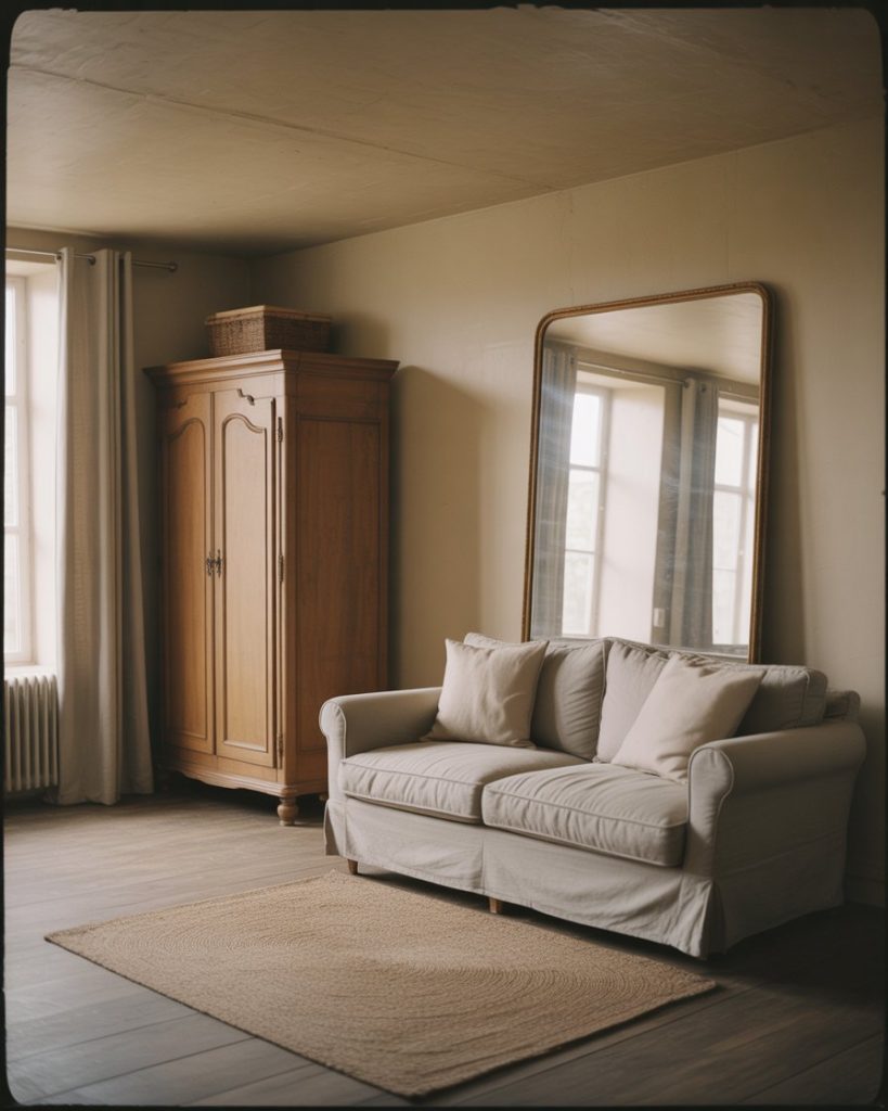 Real homeowners often make the mistake of buying everything vintage, which can look like a museum rather than a living space. Your sofa gets sat on every single day—invest in new here. Save the vintage hunting for items that don’t need to perform structurally, like mirrors, frames, and decorative objects. This strategy also spreads your budget more effectively across the room.