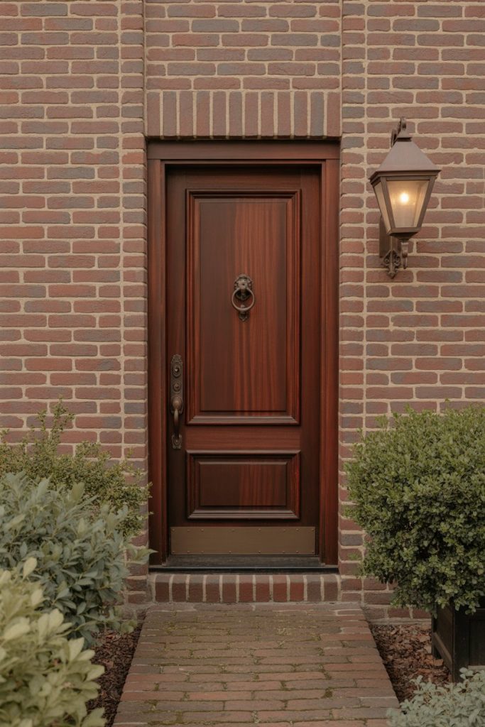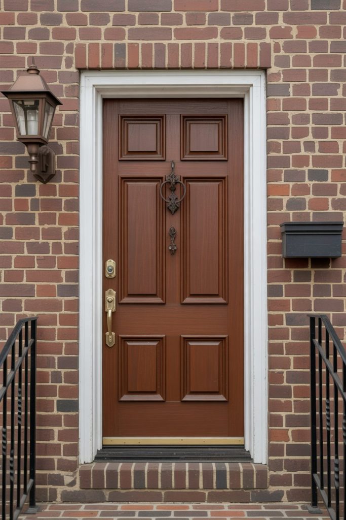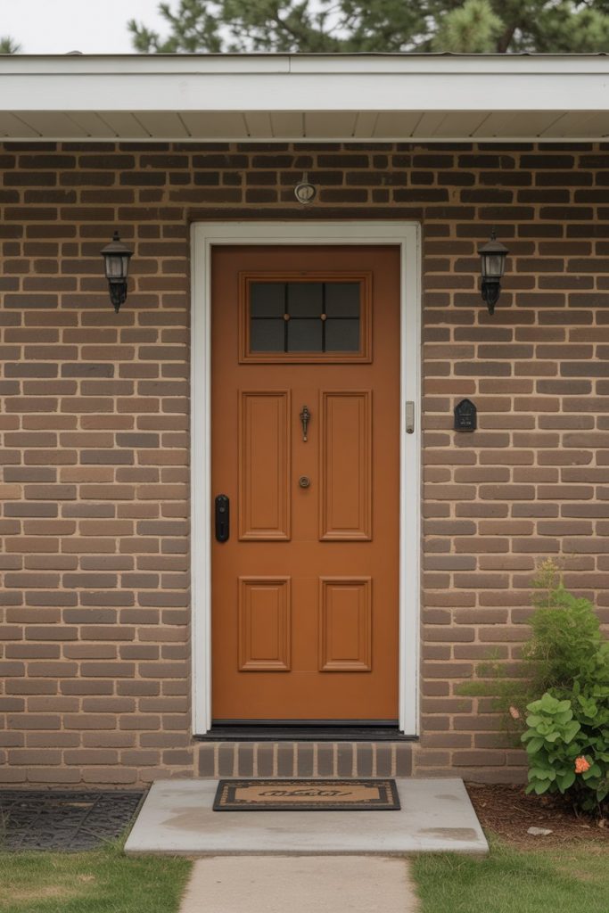 A deep brown door on a brown brick or classic brick house creates harmony instead of contrast. It’s popular with homeowners restoring historic properties because it feels authentic, like something that has always been there. Add oil-rubbed bronze hardware, and it becomes the front-porch version of a well-worn leather jacket—simple, handsome, and reliable. If bright colors feel forced on your architecture, earth tones are the smarter path.