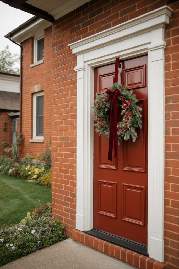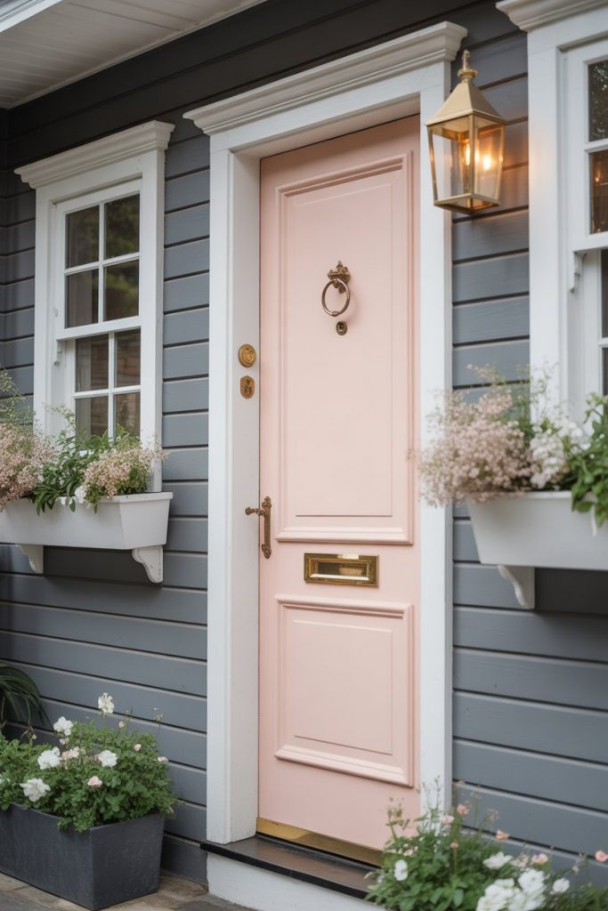 Blush is no longer just for interiors—it’s showing up on front doors as a warm neutral that flatters gray siding, brick house textures, and creamy stucco. It reads modern, gentle, and slightly romantic. Pair it with aged brass hardware, and it feels Parisian; pair it with matte black, and it becomes modern chic.