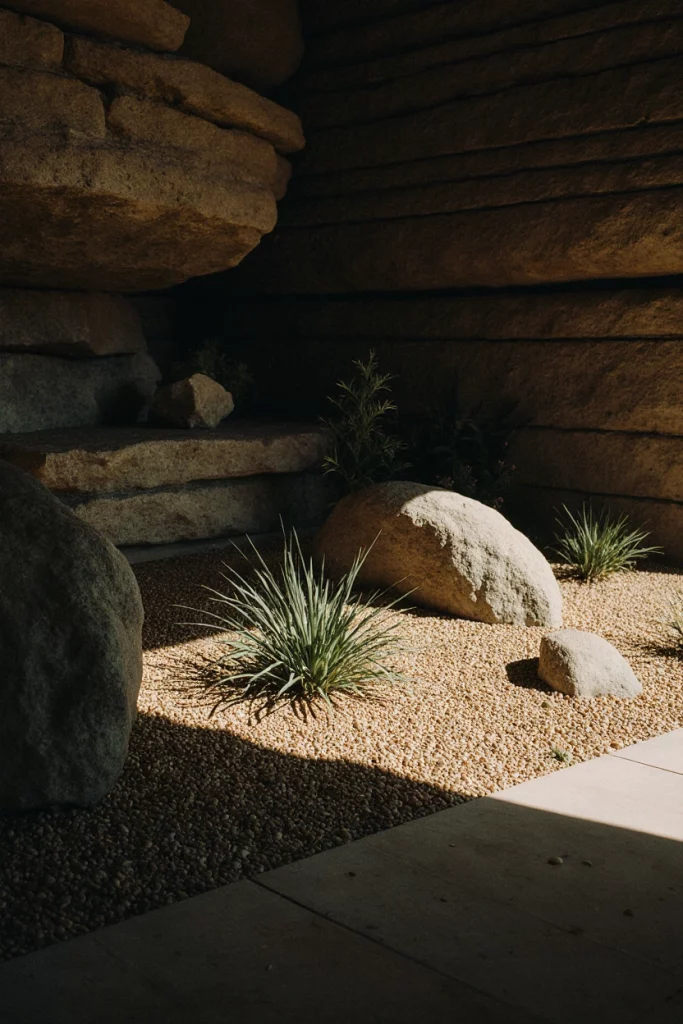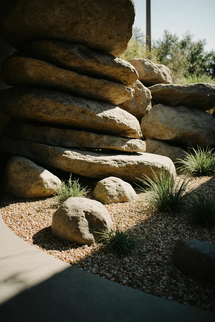 Layered rock gardens bring structure and depth to areas that struggle with traditional planting. Using stones of varied sizes complements a simple house layout plan while keeping the yard grounded in natural tones. This design blends beautifully with the idea of low maintenance for homeowners prioritizing ease.
