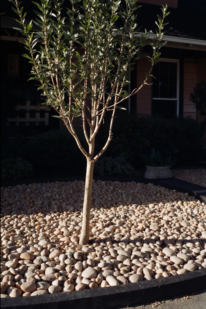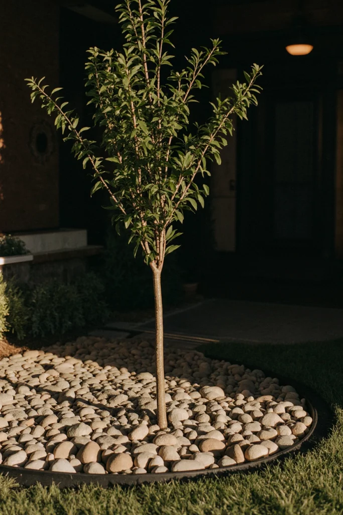 A single ornamental tree brings sculptural interest and height variation, anchoring spaces that otherwise feel flat. Planting it near a modern layout house front creates scale and contrast, while pairing it with decorative rocks enhances the clean, contemporary appeal.