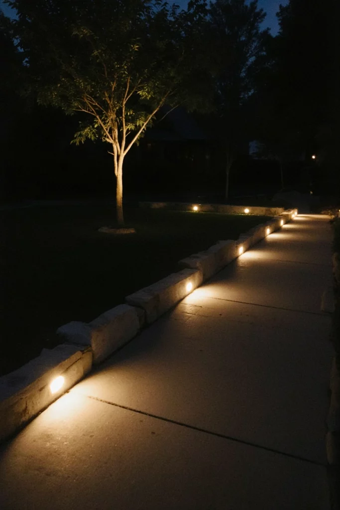 Strategic lighting transforms simple plant beds and enhances a clean house front layout by drawing attention to textures and shapes. Low path lights, uplights on trees, and warm glows along walls highlight modern lines while still feeling inviting. Combining lights with rocks and sculptural greenery gives the yard dimension after dark.