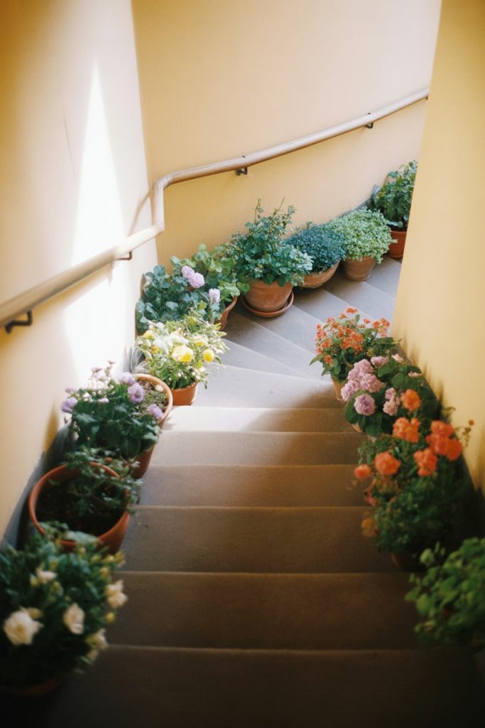 If your front steps feel bare, turn them into a mini garden by lining the edges with flowerpots. Choose a mix of heights so the plants stair-step up with the architecture. Use mostly low-maintenance annuals and perennials that bloom for months, adding one big foliage plant as a focal point. This idea works especially well when the porch itself is simple and neutral.