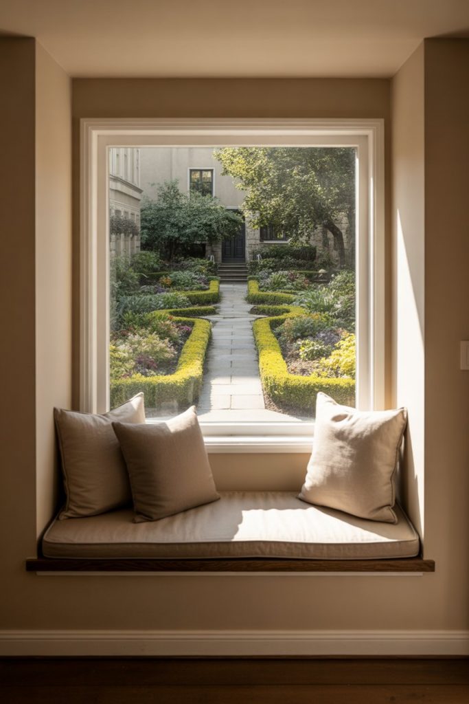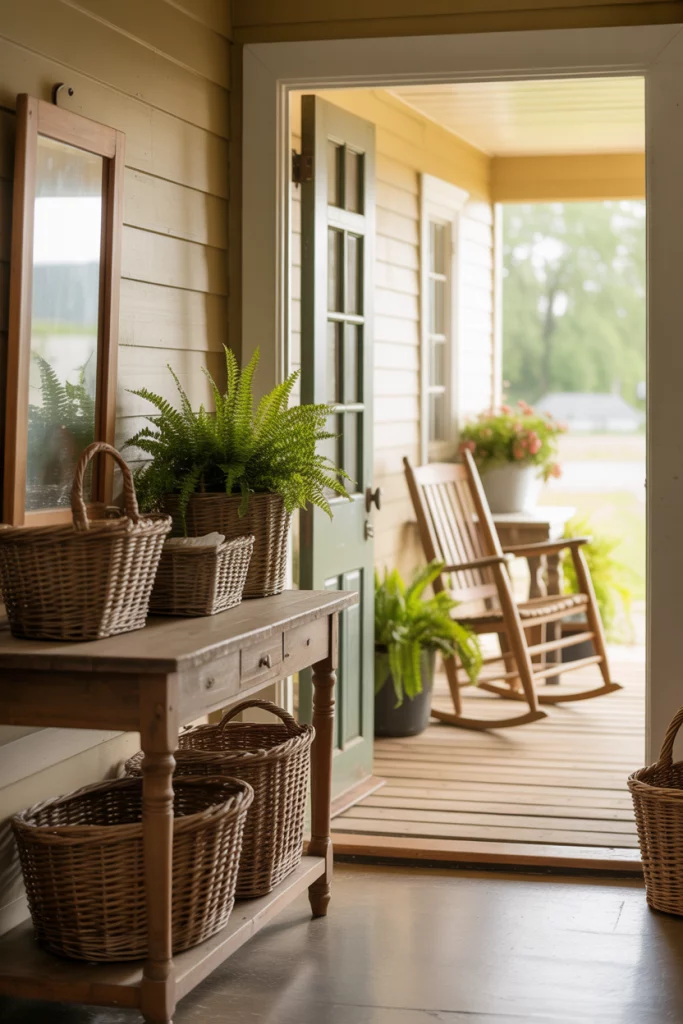 A farmhouse-inspired front yard is all about warmth and welcome, and it does not have to be complicated or fussy. Start with a few DIY touches like painted lanterns and repurposed crates as plant stands. Keep the layout simple: a pair of rocking chairs, a jute rug, and a soft wreath on the door. Low flower beds along the porch edge tie everything together without feeling overdesigned.