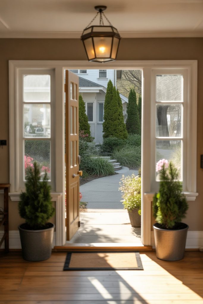This approach suits American neighborhoods where porches sit close to the sidewalk and you want passersby to see something cheerful. Concentrating containers by the door also makes watering easier, since everything is within a few steps. Choose lightweight pots if you like to rearrange seasonally, and consider a rolling plant stand for the largest container so you can shift it when cleaning or hosting guests.