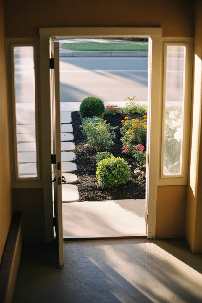 For practical impact, focus your budget on the walkway and front step, since those are the surfaces you touch daily. Choose pavers or poured concrete with a lightly textured finish so they stay safe in rain or snow. Then add just a couple of hardy perennials near the door for color. This small upgrade alone can make the entire home feel more finished without needing to redo the whole yard.