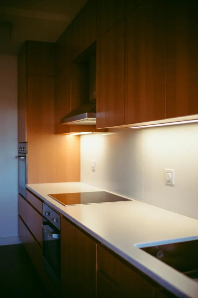 22. Galley Kitchen with Under-Cabinet LED Lighting