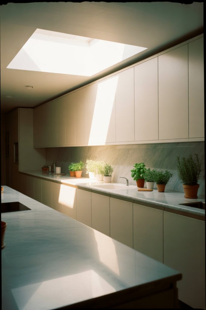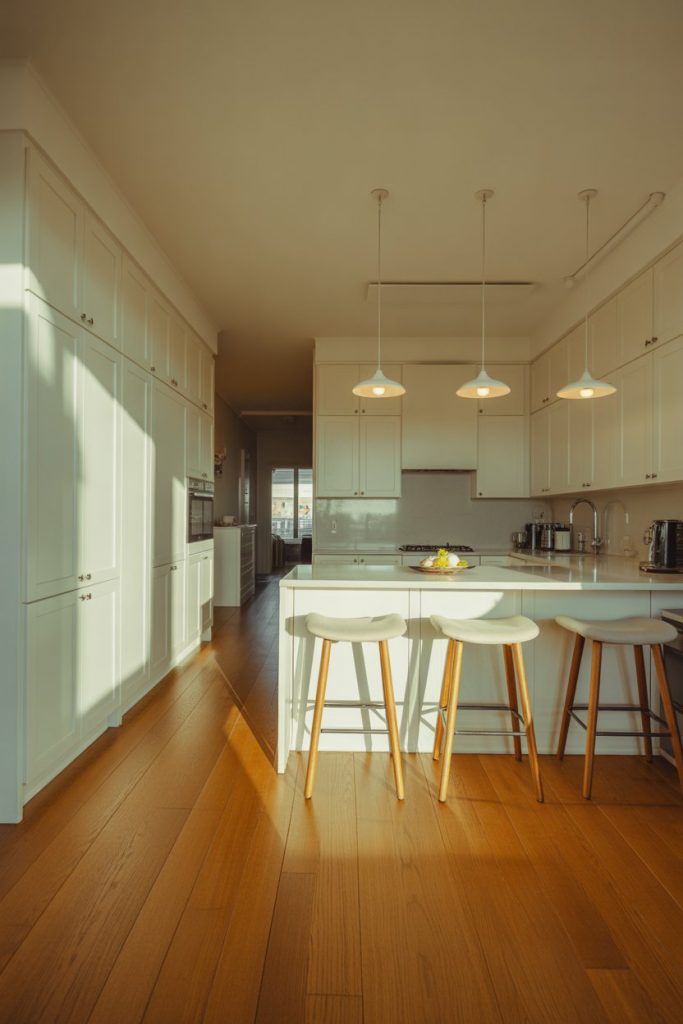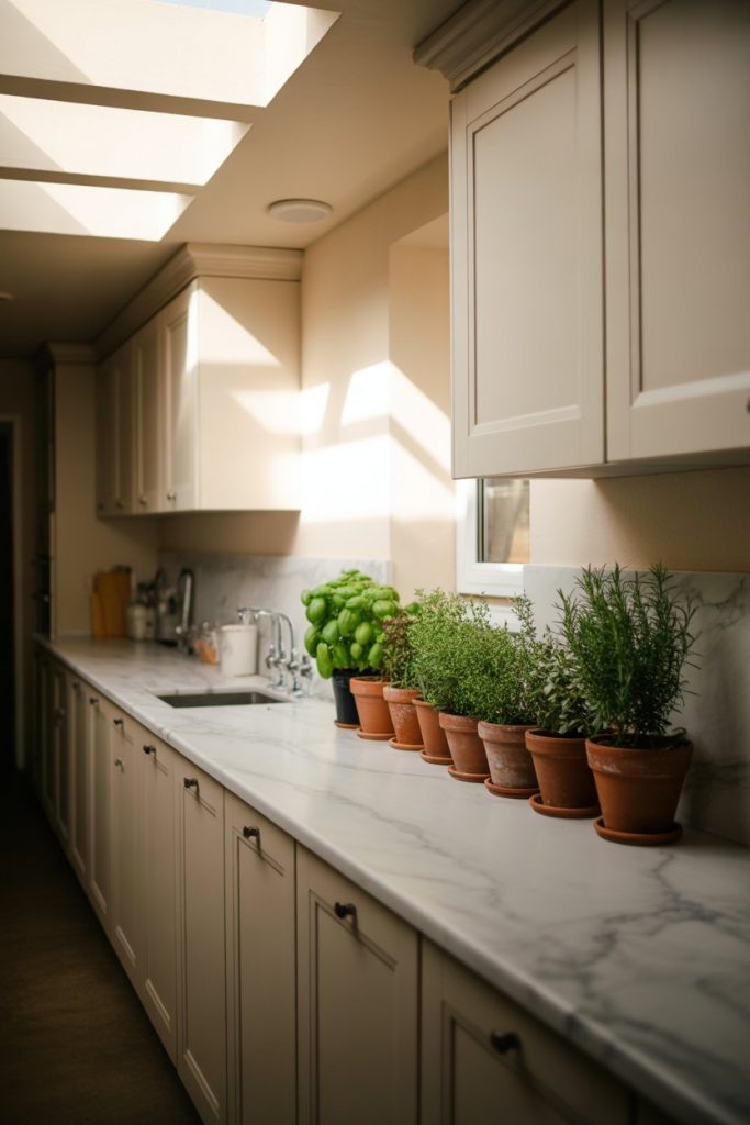 A long galley can feel like a tunnel without adequate lighting. Adding a skylight or two dramatically changes the mood, flooding the space with natural light and making it feel taller and airier. This is particularly effective in single-story homes or top-floor apartments where roof access is straightforward. Pair the skylight with light-colored cabinets and reflective surfaces to maximize the effect.
