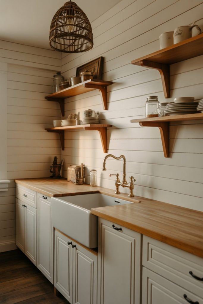Open shelving encourages you to keep only what you use, which naturally reduces clutter. It’s also a budget-friendly alternative to custom cabinetry, especially if you’re working with a contractor who charges per linear foot. Just be prepared to dust more often—displayed dishes collect kitchen grease faster than you’d think, particularly near the stove.