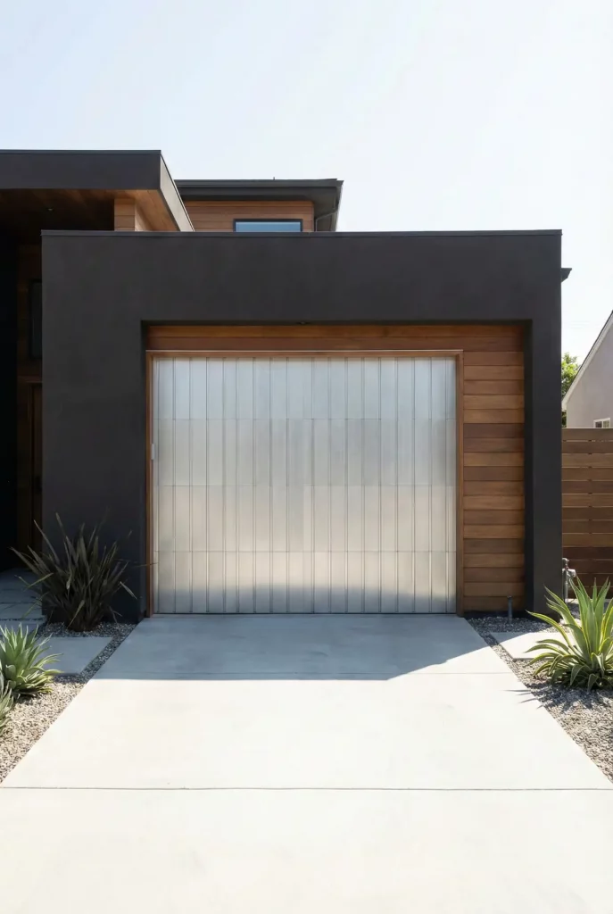 For those who prefer clean lines and understated elegance, a flush-panel garage door in a neutral color offers a modern minimalist aesthetic. These doors lack raised panels or texture, creating a smooth, uninterrupted surface that pairs beautifully with contemporary architecture. They’re often seen in mid-century modern and Scandinavian-inspired homes where less is more.