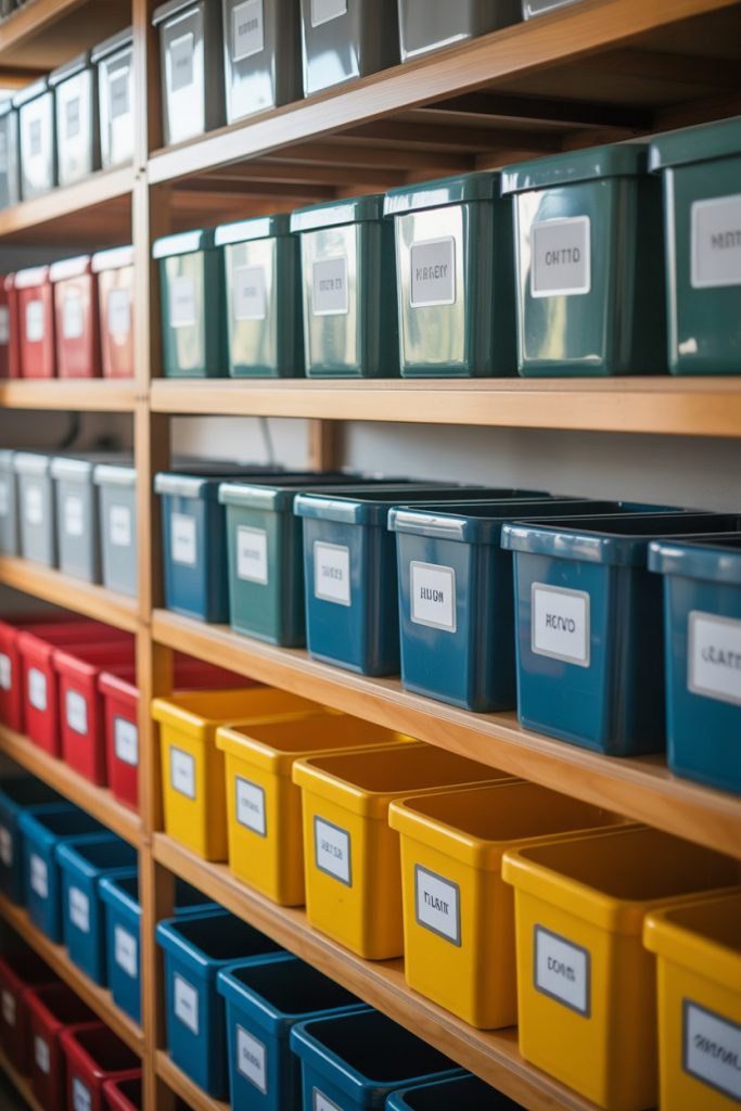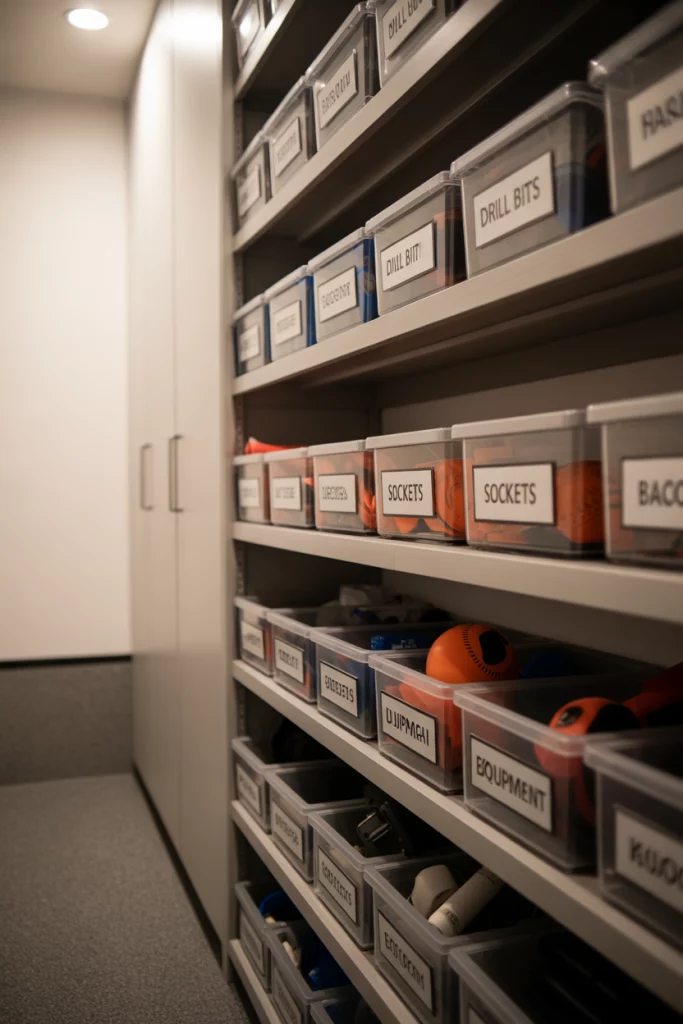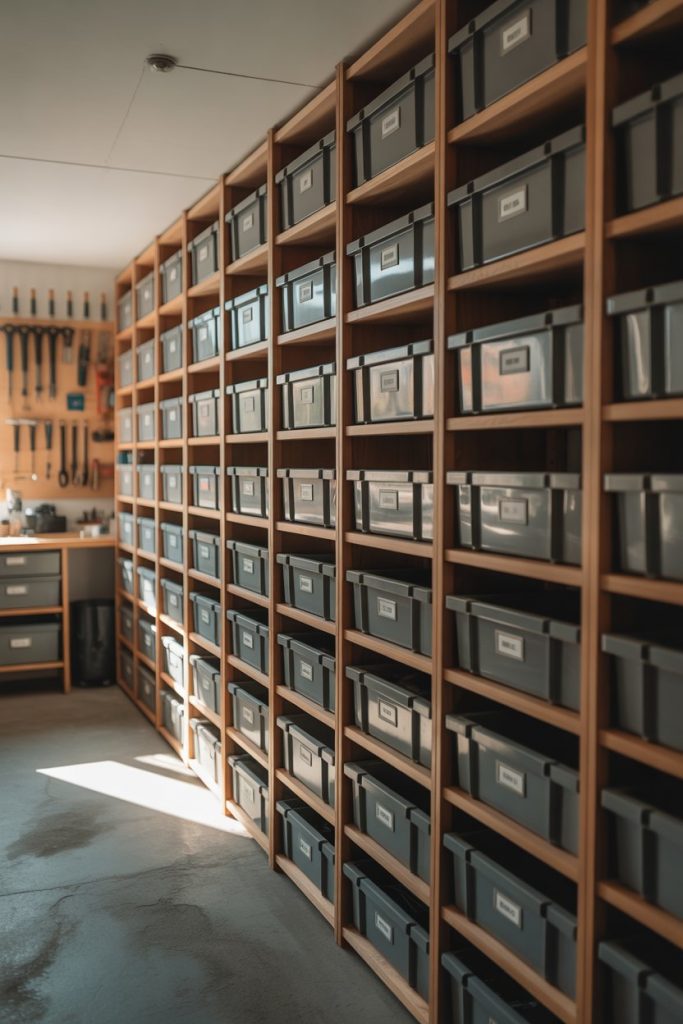 The final step to any great storage plan is organization. Use colorful bins, tags, and containers to sort tools, sports gear, and bikes accessories. This modern, cheap, and affordable method ensures every family member knows where items belong. It keeps your workshop tidy and easy to maintain over time.