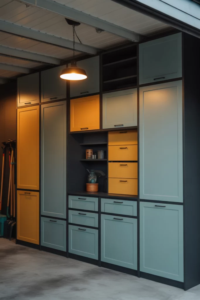 Old kitchen cabinets from Ikea or thrift stores make excellent storage shelves for your garage. Sand, paint, and mount them for a modern look. It’s an easy diy and affordable way to create plenty of organized compartments for tools, shoes, or cleaning supplies. This eco-friendly method adds charm and function on a budget.