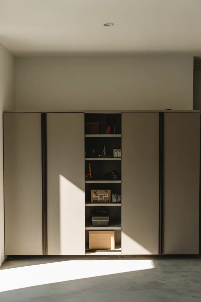 Sliding-door cabinets are perfect for small space garages because they save room and hide clutter. Use them to organize tools, cleaning supplies, and seasonal décor. Ikea modular systems let you expand later without a full renovation. Their clean lines give a modern and minimalist feel, ideal for 2 car garages.
