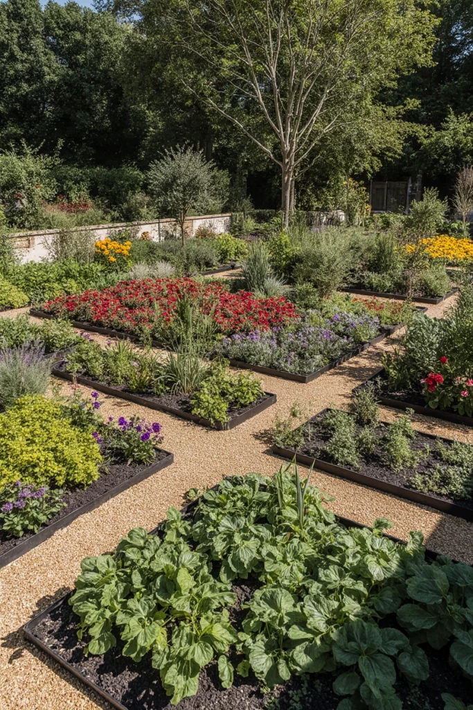 A French-style potager merges vegetables, flowers, and herbs in decorative geometric beds. This blend of landscaping ideas creates practical beauty that suits both front yard and backyard settings. Using symmetry, edging, and color, the design becomes a centerpiece rather than a utilitarian plot. Many homeowners appreciate how the potager bridges everyday gardening with upscale European charm.