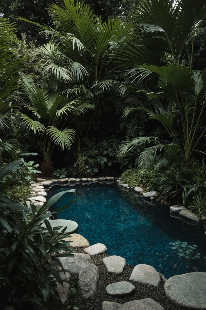 A tropical micro pool adds a refreshing atmosphere to compact outdoor spaces where full pools aren’t possible. Surrounded by lush plants and smooth stones, it becomes a cooling, immersive feature for patios or terraces. Designers highlight that even tiny water features dramatically change climate and mood. Combined with dense foliage, the style mirrors boutique resort gardens on a manageable scale.