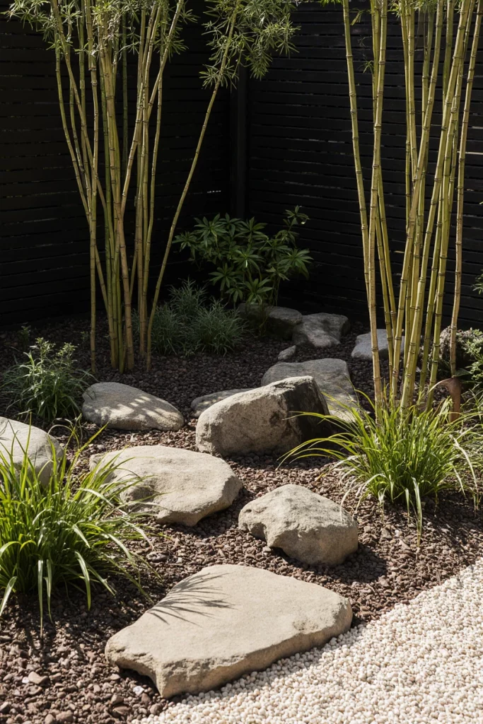 A Japanese-inspired Zen corner adds grounding calm to any outdoor area, especially in a tiny or narrow space where traditional gardening is limited. Using stones, bamboo, clipped shrubs, and a gentle water element, the design focuses on stillness, balance, and minimalism. It works beautifully in small patios or apartment courtyards where people want a quiet moment of retreat from the day.