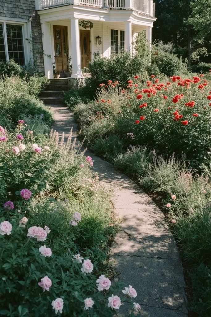 The cottage garden trend continues strong for 2026, especially in the front yard, where layered borders feel welcoming and expressive. Using roses, herbs, and loose perennial groupings, the look creates abundant charm without feeling messy—thanks to thoughtful plans borrowed from English gardens. Homeowners love its nostalgic feel, and it works even in smaller suburban yards.