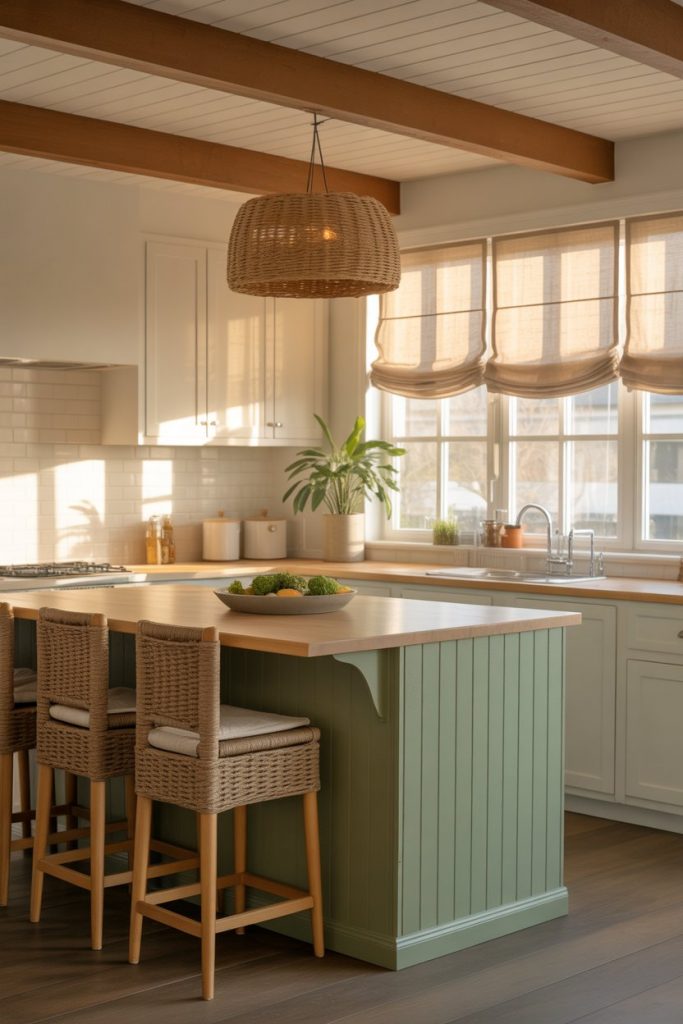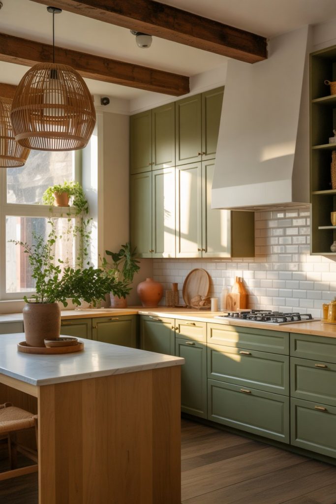 The classic white and green combination never goes out of style because it’s inherently balanced—green adds personality and warmth, white provides breathing room and light reflection. Layer in natural textures like wood, rattan, linen, and stone, and you’ve got a kitchen that feels collected and comfortable rather than designed. This palette works across virtually every architectural style, from farmhouse to contemporary, which explains its enduring popularity on Pinterest where users seek ideas they can adapt to their own homes.