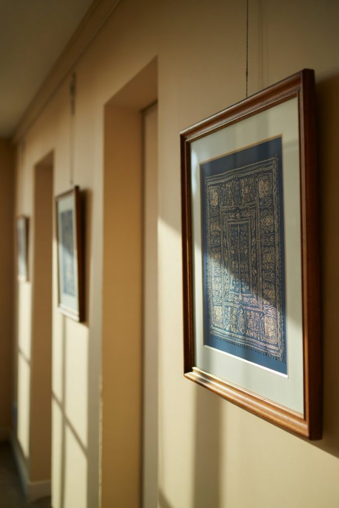 Framing a piece of vintage fabric—such as a quilt square, embroidered linen, or patterned textile—offers a unique alternative to traditional paintings prints. This approach is ideal for adding warmth and color to a narrow modern hallway, and it works beautifully in homes with a global or eclectic aesthetic. The texture of the fabric adds depth that flat paper or canvas can’t, and the framing process is straightforward with the right mat and shadowbox frame.
