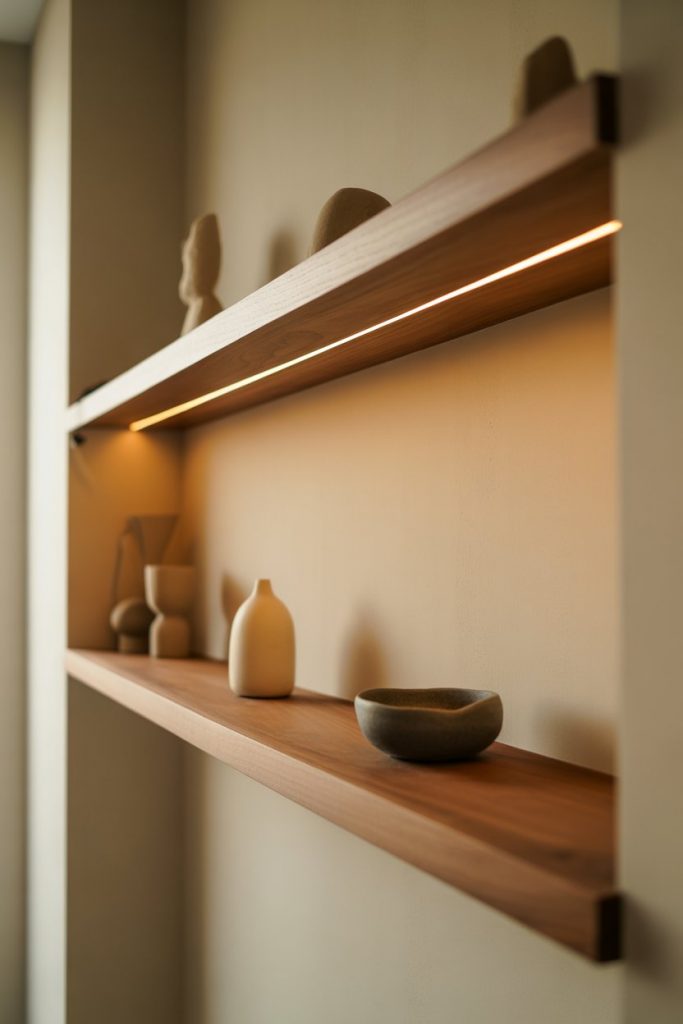 20. Illuminated Floating Shelves with Indirect Lighting