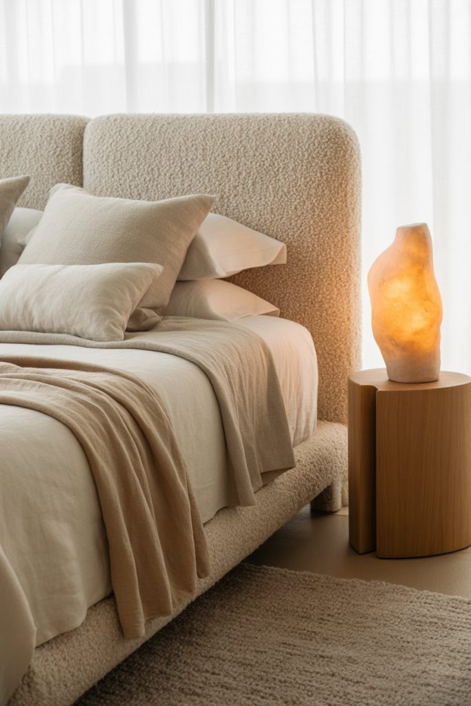 The 2026 bedroom is less hotel-perfect and more touch-rich. Bouclé headboards, quilted throws, clay lamps—texture is the new luxury. Sleep experts note that tactile layers signal safety to the brain, helping people unwind faster. Smooth surfaces are out; sensory coziness is in.