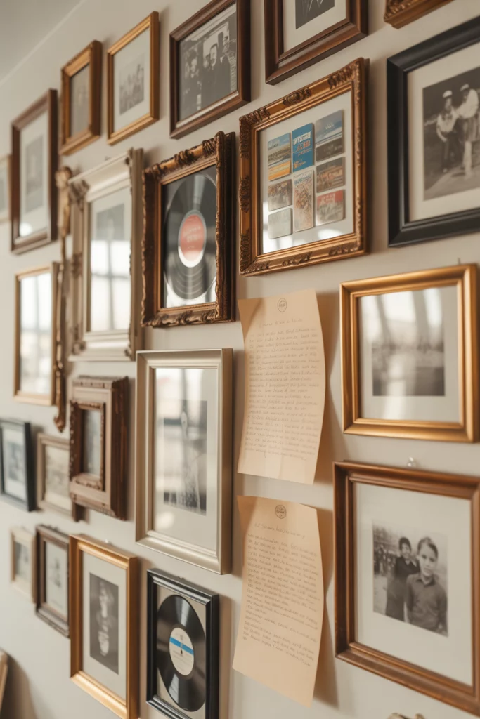 Instead of one big artwork, people curate personal “story walls” of postcards, vinyl sleeves, family photos, and even handwritten recipes. It’s the anti-algorithm décor—messy, soulful, and impossible to copy. A perfect answer to vintage lovers who want meaning, not mass production.