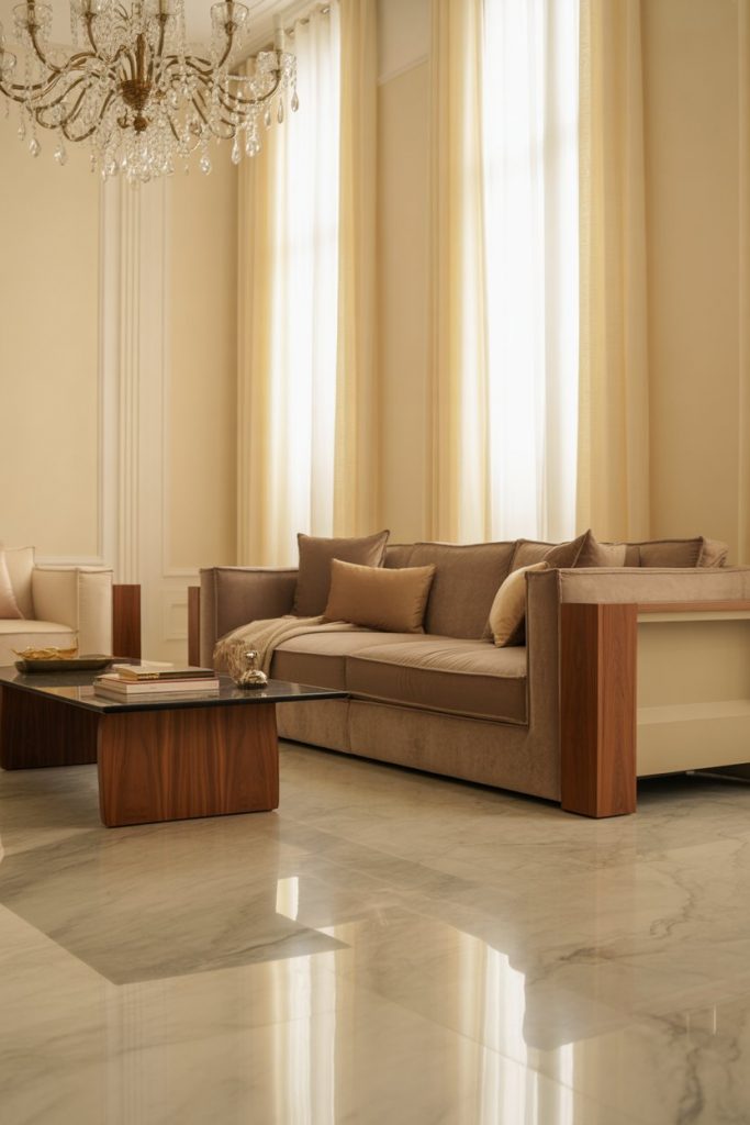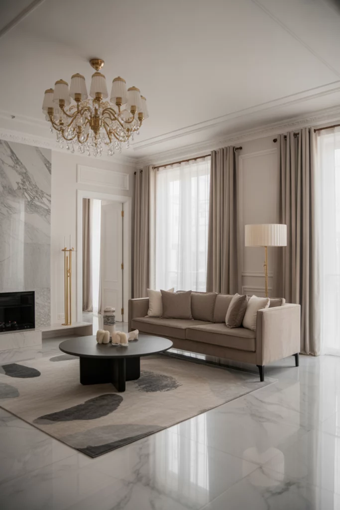 A modern European home in 2026 is all about quiet luxury. Subtle marble, oversized windows, and statement lighting define this luxury aesthetic. Think of a living room where art meets comfort—a velvet sofa under sculptural lighting. Influencers like Kelly Hoppen highlight how muted palettes and high-quality materials achieve understated glamour.