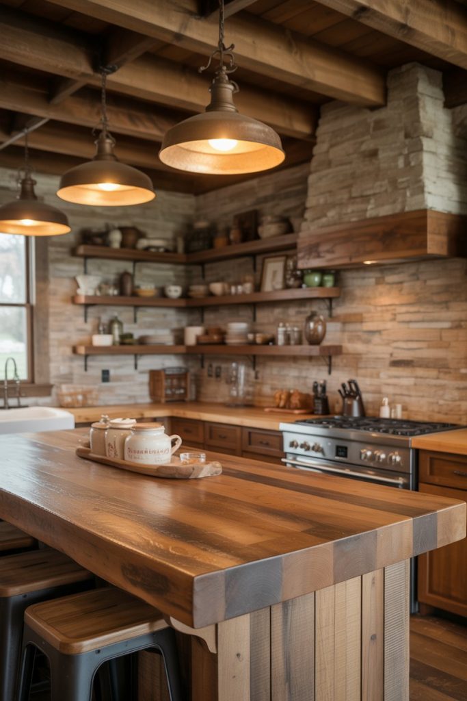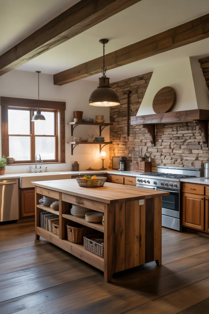 In an age of sleek minimalism, rustic interiors bring emotion back into the home. Exposed beams, rough-hewn tables, and handmade pottery connect people to nature. A kitchen with reclaimed wood and stone textures feels authentic, reminding us of simpler times. This trend resonates strongly in countryside homes and cozy city lofts alike.