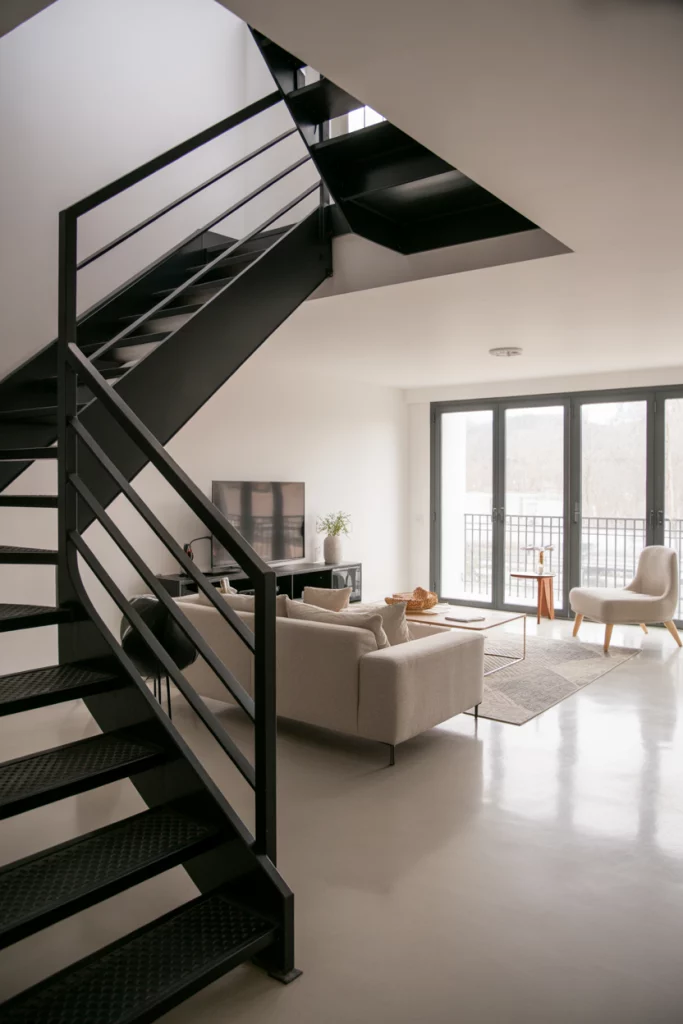 Black accents in bright spaces have become a fundamental way to add a note of drama sans the weight. Windows’ frames, stair rails, and other fixtures in matte black tend to make spaces feel a bit more architectural. Even in small living spaces, with stairs and black lines, which help define structure, chic, modern retreats can be created in compact homes.