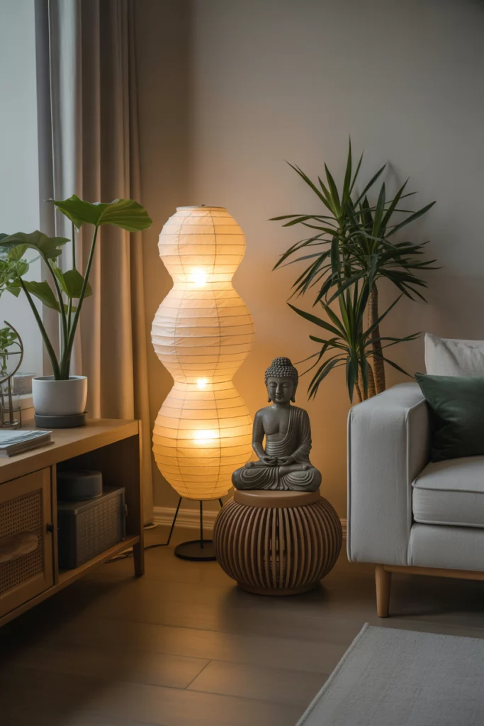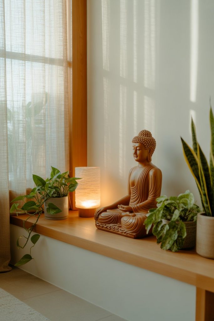 Wellness-oriented design continues with spiritual touches. A Buddha statue in a living room or garden symbolizes mindfulness and peace. Interior experts like Joanna Gaines note how subtle spiritual décor can center a space. Paired with candles and plants, it adds balance without clutter—creating sanctuaries of daily calm.