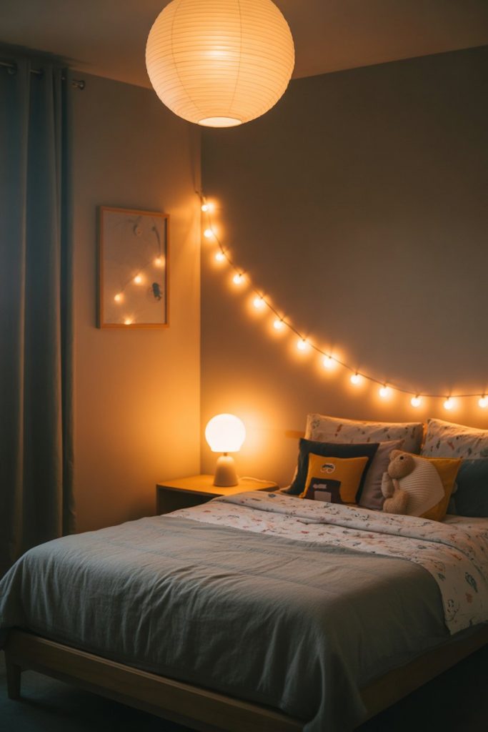 Combining overhead lights, task lamps, and ambient sources like string lights or salt lamps creates a cozy kids room atmosphere that adapts to different activities. Dimmers are key—they allow you to transition from bright playtime to calm bedtime without switching rooms.