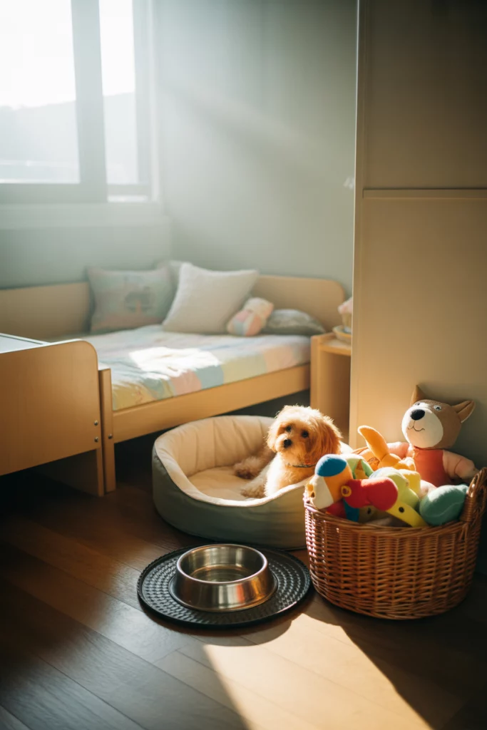 If your family has a dog or cat, integrating a pet nook into the kids room design 2026 can be both practical and adorable. A small pet bed tucked under a bench or a feeding station in a corner keeps furry friends close while teaching kids responsibility and empathy.