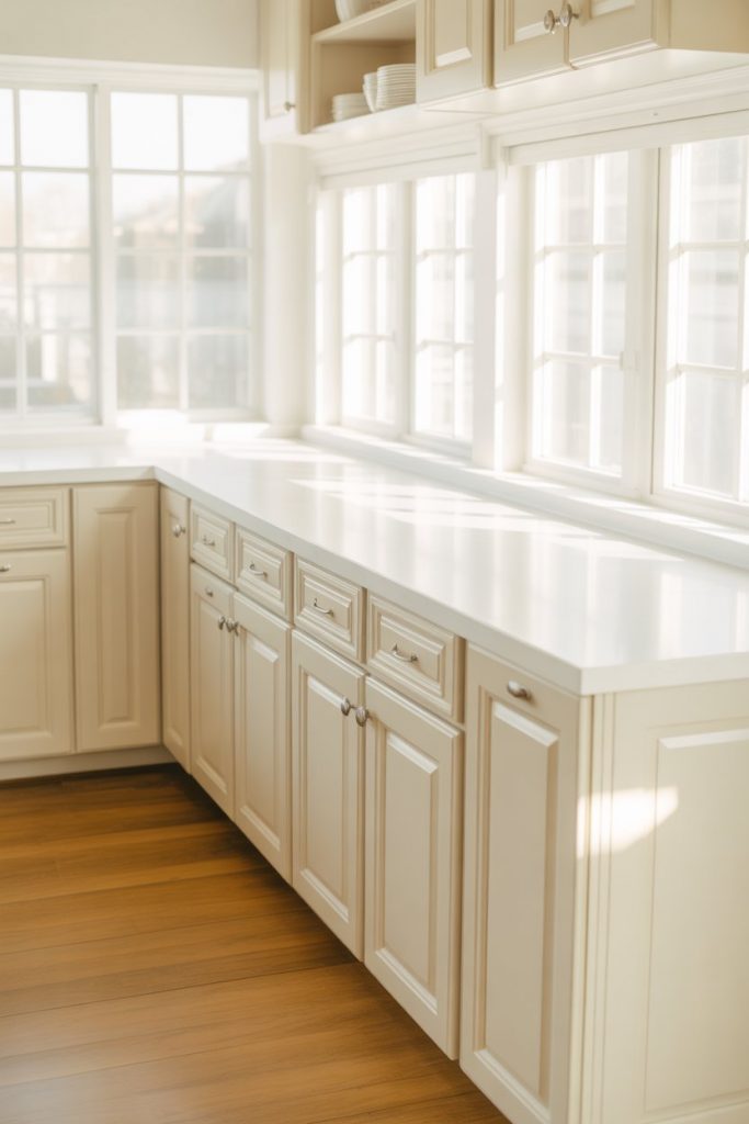 Buttery cream is a lovely alternative to harsh whites. It works very well in farmhouse or cottage-style kitchens. Buttery cream harmonizes with wood floor interiors, butcher block counters, and soft black hardware. In vintage homes, homes were kept light and inviting and with an open and welcoming palette. Country Living Magazine echoes the sentiment of homes with cream tones, that they have a vintage warmth of comfort and familiarity. This is helpful to homeowners who prefer subtle cozy tones instead of cool stark minimalism.