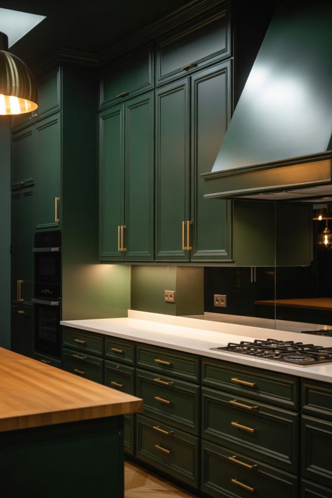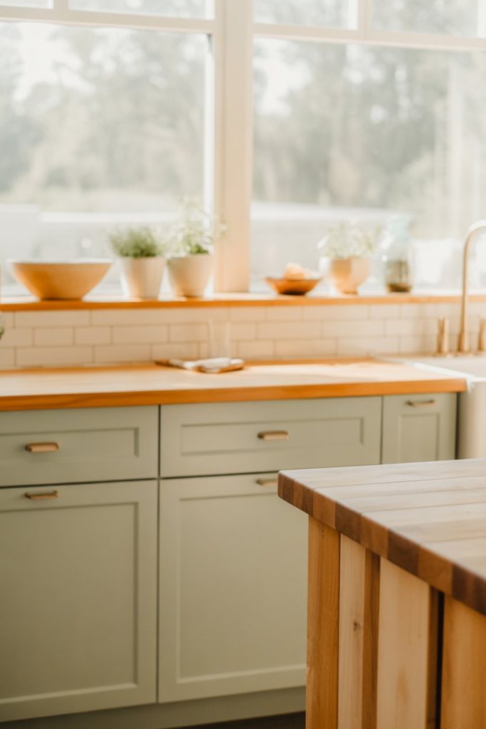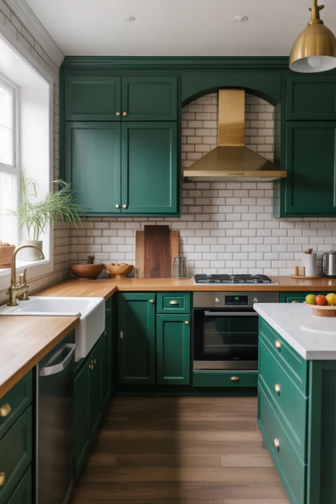 Deep green cabinetry brings bold, organic sophistication into the kitchen, a look embraced by design influencers such as Sarah Sherman Samuel. This shade pairs beautifully with butcher block counters or even sleek white countertopquartz to create rich contrast. Forest tones add a moody dimension that feels both luxurious and comforting, making them ideal for open kitchens that merge with living spaces. With dark countertopsor brass fixtures, the space becomes grounded yet upscale.