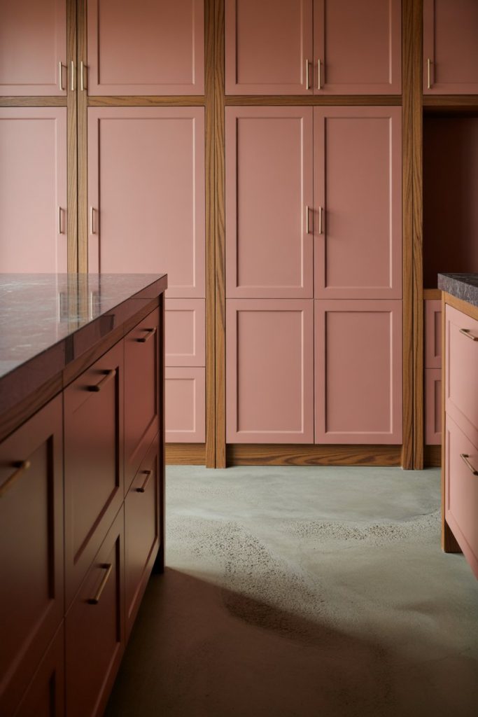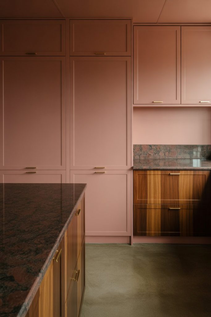 Soft blush or dusty rose tones are returning in Paint 2026 palettes, bringing warmth without overt femininity. When balanced with wood open shelving or concrete floors, the color feels sophisticated and urban. This unexpected hue suits creative homeowners who want something outside traditional neutrals yet still refined. It pairs elegantly with dark granite counters or matte black fixtures, proving pink can be modern and grown-up when used correctly.