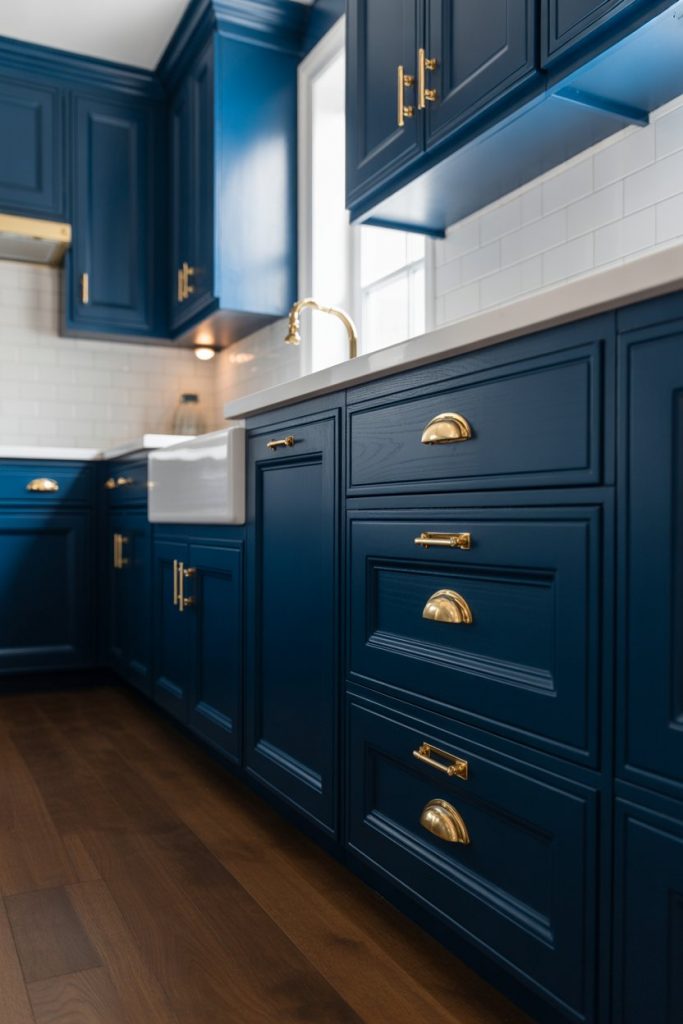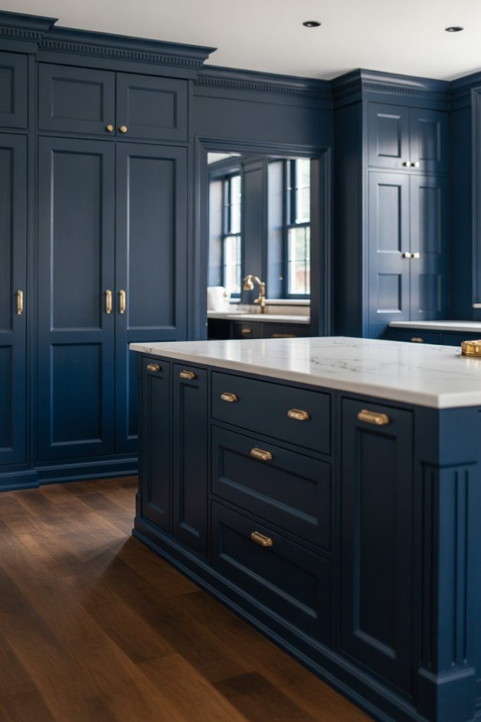 A timeless painted navy continues to dominate both coastal and city kitchens for 2026. Its strength lies in how it complements white countertopmaterials and dark brown floor finishes, producing visual harmony. Navy evokes calmness and works well in small space designs where full black might feel overpowering. Add brass or gold handles for a hint of luxury, and the result feels curated yet classic—like a kitchen straight from a House & Garden feature.