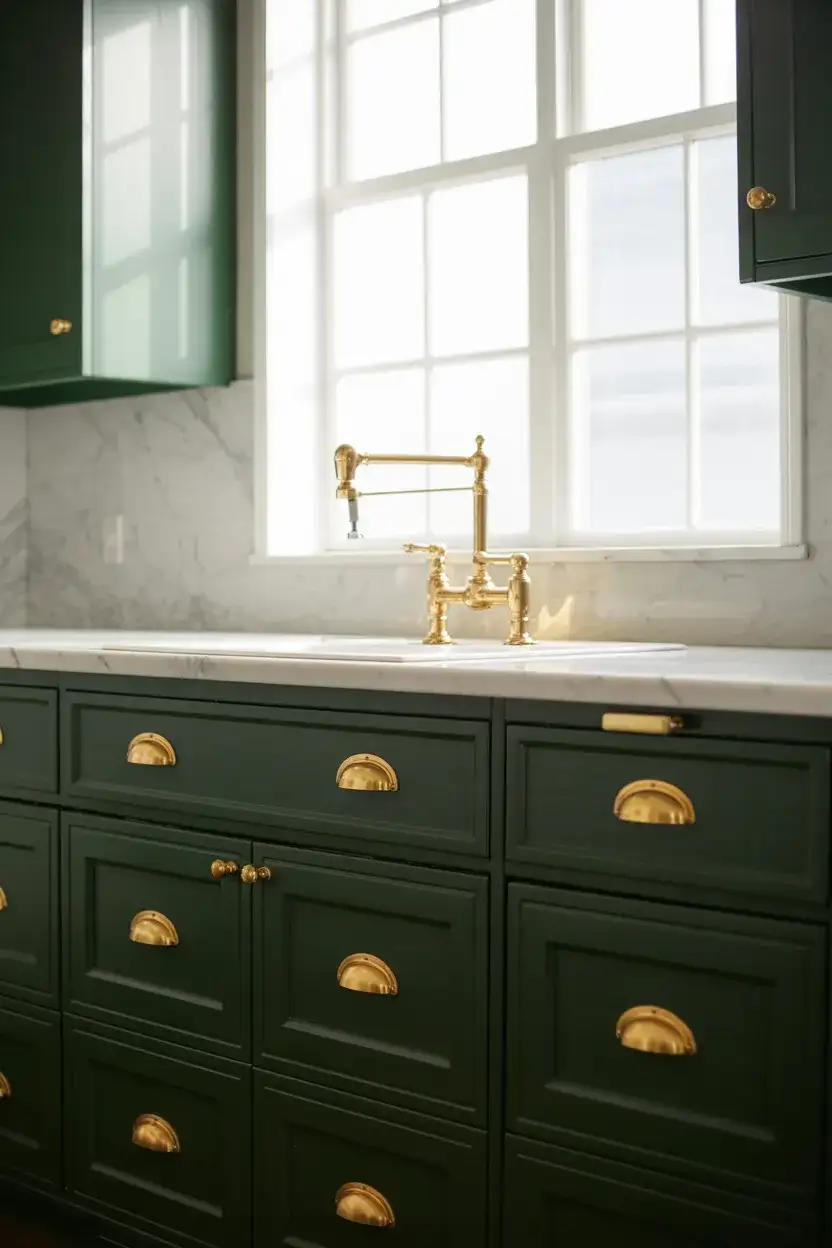 A conversation I had recently with a color consultant in Nashville stuck with me—she said dark green is the new navy, meaning it’s bold enough to feel daring but familiar enough that most people won’t tire of it in five years. That’s an important distinction because a cabinet color is a significant commitment. Her advice: if you’re nervous about going fully dark green on every surface, start with the island or a single bank of base cabinets and keep the uppers in a warm white or cream. You get the drama without the risk of a room that feels like a cave.
