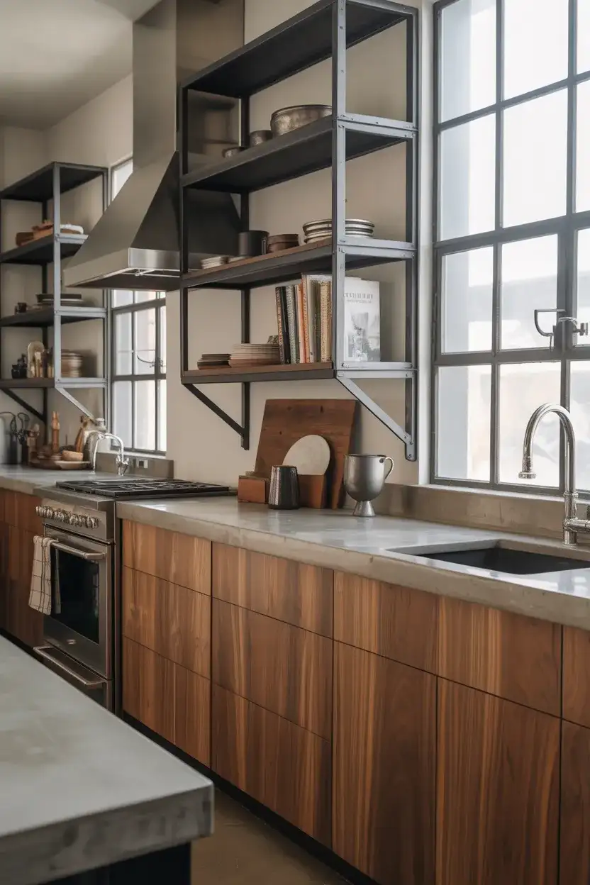 Where this combination works best is in medium-sized kitchens—the kind you find in most suburban homes built between the 1970s and today. A full run of upper cabinets in a smaller kitchen can feel oppressive, especially in a darker gray. Swapping two or three cabinet boxes for open shelves instantly lightens the visual weight and gives you a spot to display the pieces you actually love—the hand-thrown pottery from a vacation, the cookbook collection you’ve been building for years. It turns dead storage into personality, and it costs less than the cabinets it replaces.