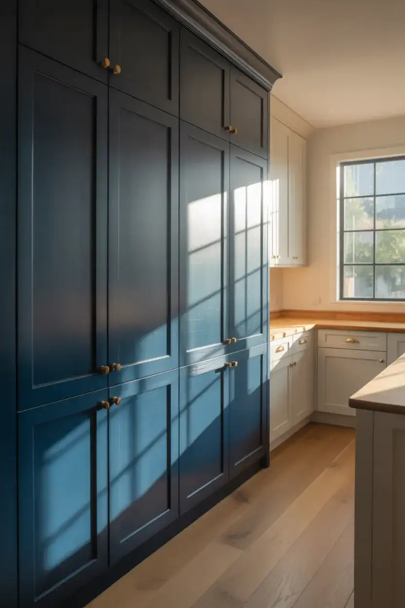 When done right, a full wall of blue cabinetry can transform a kitchen from ordinary to unforgettable. The ideas circulating this year lean heavily toward deep, muted blues—think naval, stormy slate, or inky denim—applied to a single pantry wall that stretches from floor to ceiling. This approach works because it creates a focal point without overwhelming the room; the remaining walls and cabinets stay neutral, letting the dark blue moment breathe. It’s theater without the chaos, and it photographs unbelievably well, which partly explains why Pinterest is absolutely flooded with saves on this look.