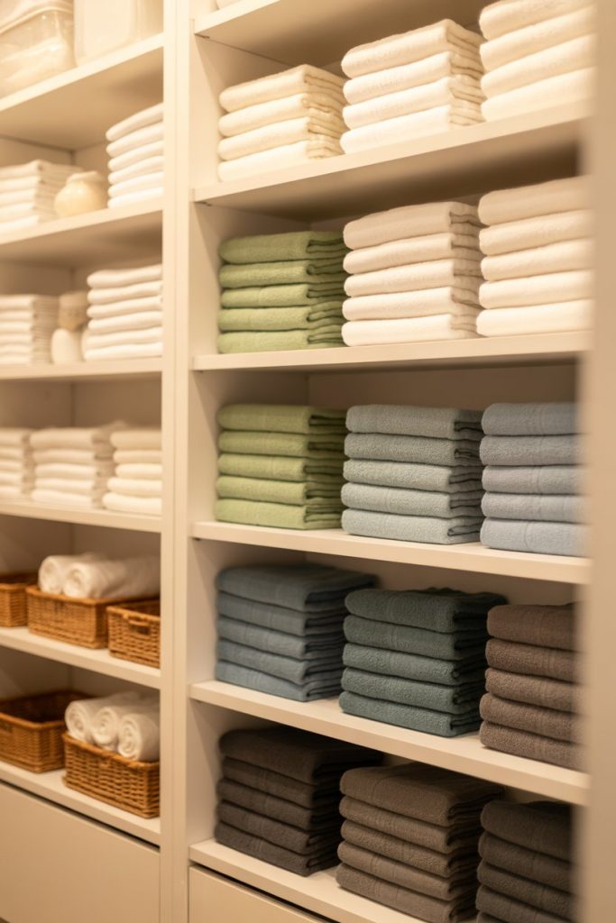 Smart folding is the foundation of a truly aesthetic linen closet. Fold towels and sheets uniformly, stack by use, and roll smaller items to save space. This method not only looks pleasing but also makes every grab quick and satisfying—an approach many home organizers, like The Home Edit, recommend.