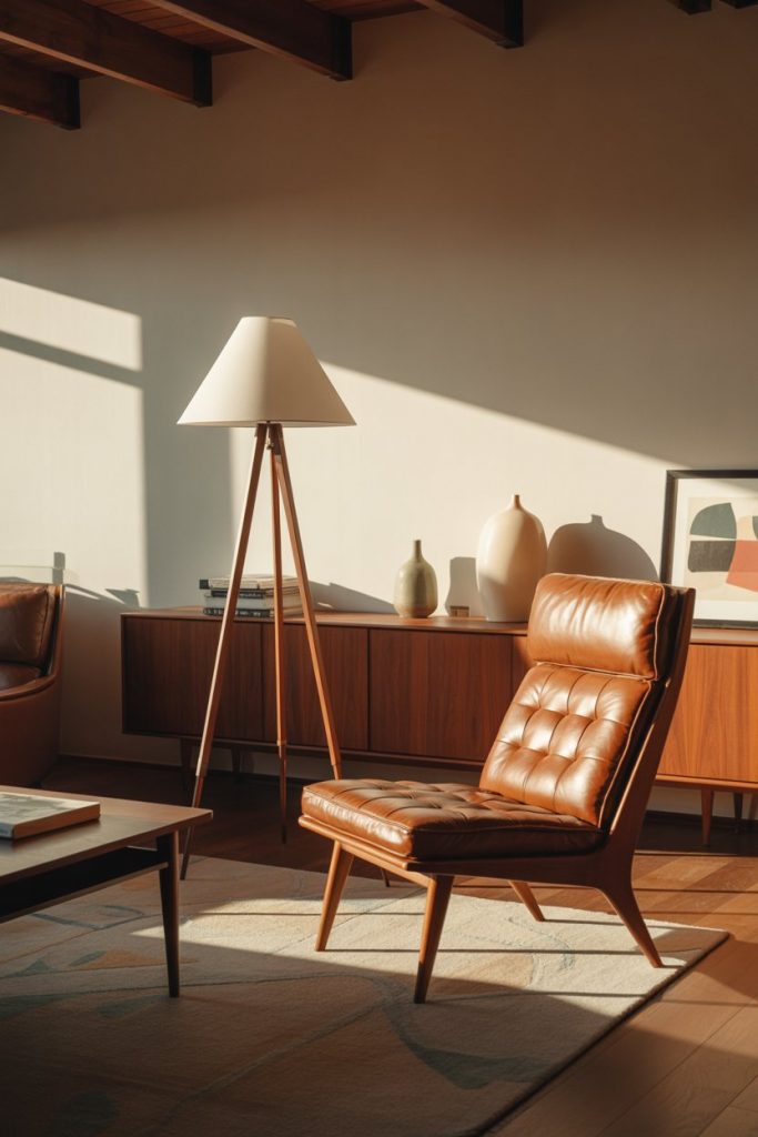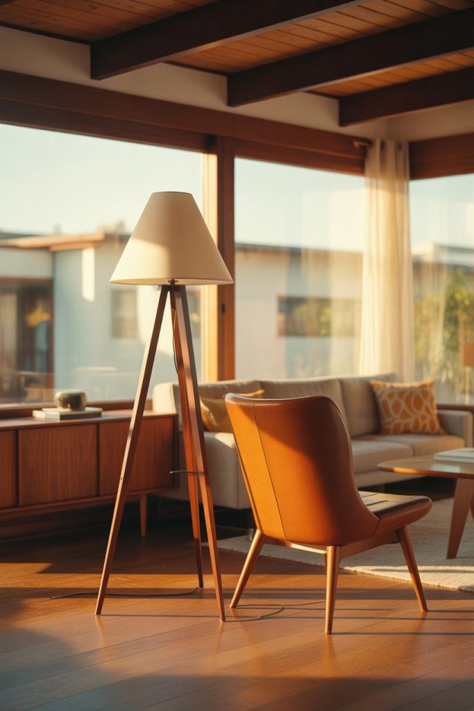 Few lighting styles feel as timelessly cool as mid century modern, and tripod floor lamps are the poster child for this era’s design ethos. With their splayed wooden legs and conical or drum shades, these lamps bring instant retro charm to any living room. They work beautifully in apartment settings where you need portable, impactful lighting that doesn’t require installation. Place one beside a vintage-inspired armchair or next to a credenza stacked with design books, and you’ve got a vignette that looks straight out of a 1960s Palm Springs home.