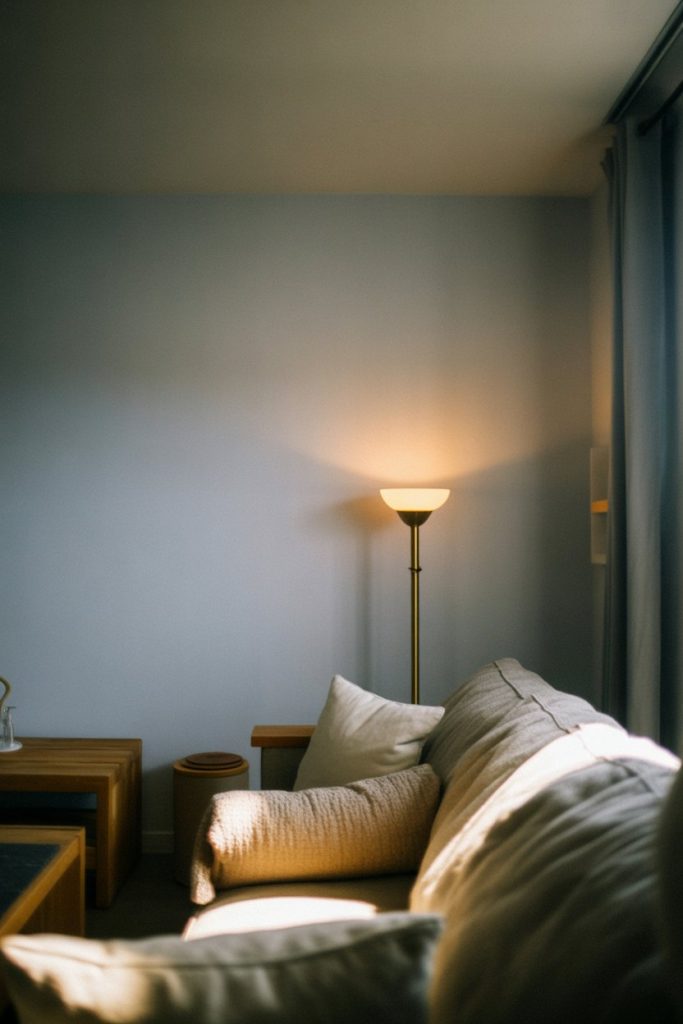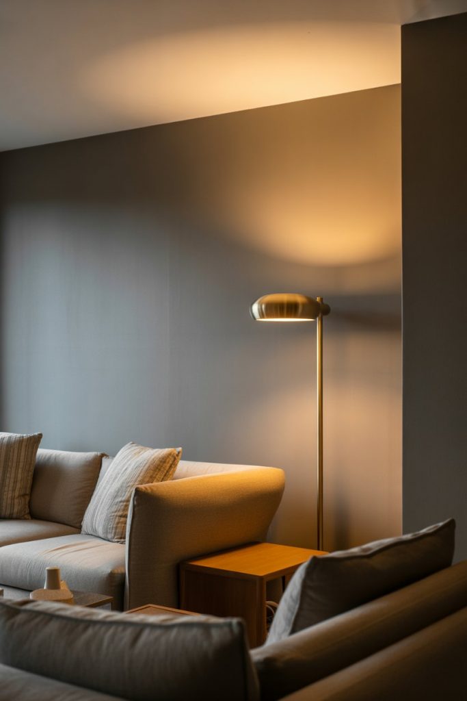 Living rooms with grey walls can sometimes feel cold or flat, but the right floor lamp strategy fixes that instantly. Choose lamps with warm-toned shades (linen, amber glass, or brass) and position them in corners or beside seating to create pockets of inviting light. Uplighting floor lamps—those that direct light toward the ceiling—are especially effective, bouncing warmth off the grey surface and making the entire room feel brighter. In smaller apartment spaces, a single well-placed floor lamp can eliminate the need for multiple task lights, simplifying your setup while maximizing impact.