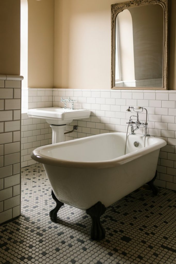 Create a charming guest bathroom with vintage finds like a clawfoot tub, antique mirror, or salvaged vanity. Mix these pieces with fresh white subway tile and neutral paint to keep the space from feeling dated. Add period-appropriate details like cross-handle faucets, hexagon floor tile, and a vintage-style medicine cabinet. This approach is perfect for older homes where you want to honor the architecture while still providing modern comfort.