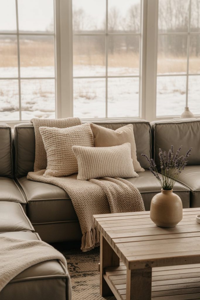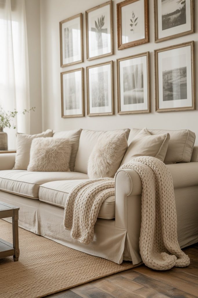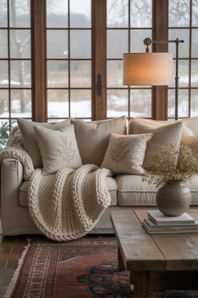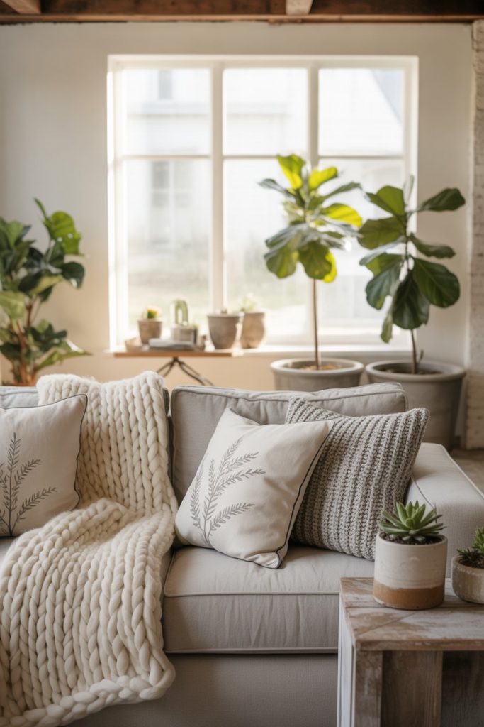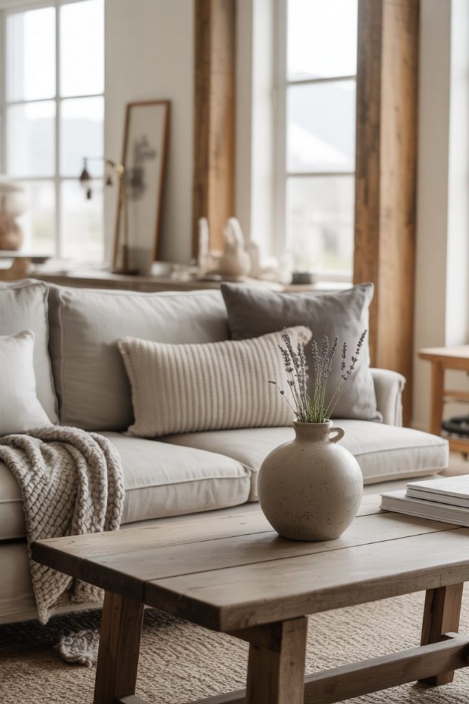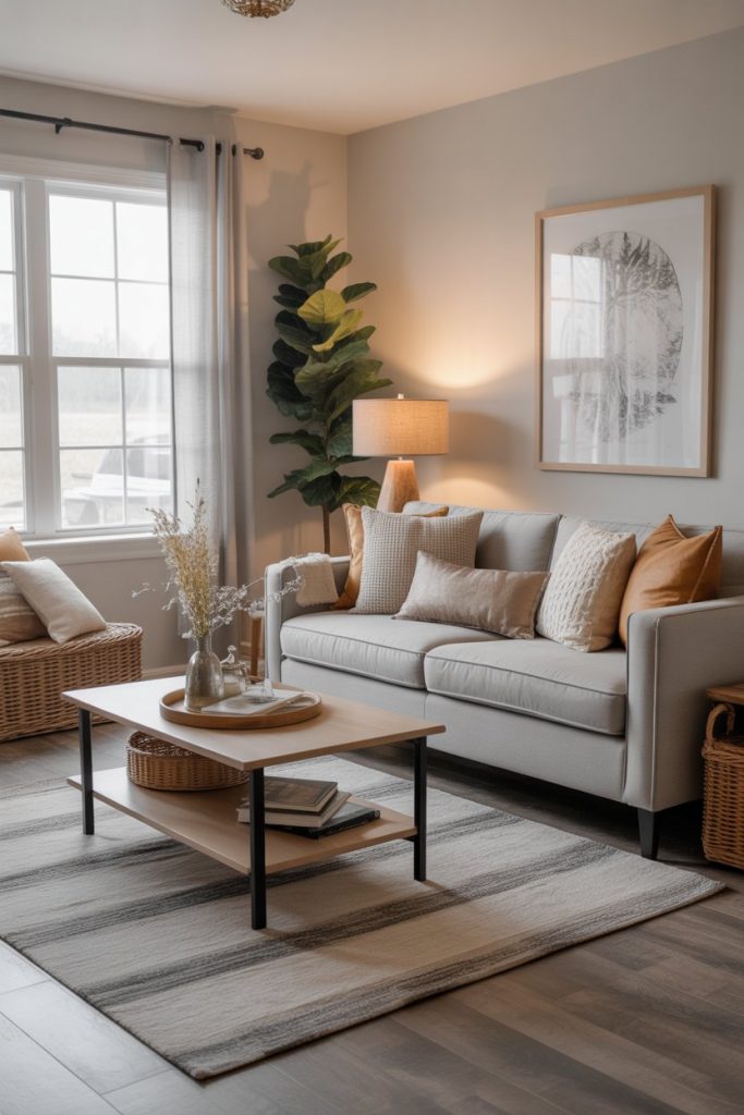 Calming color schemes built around whites, taupes, greys, and browns create harmony. These hues keep your living room feeling bright yet grounded, perfect for year-round decor ideas and relaxed gatherings.