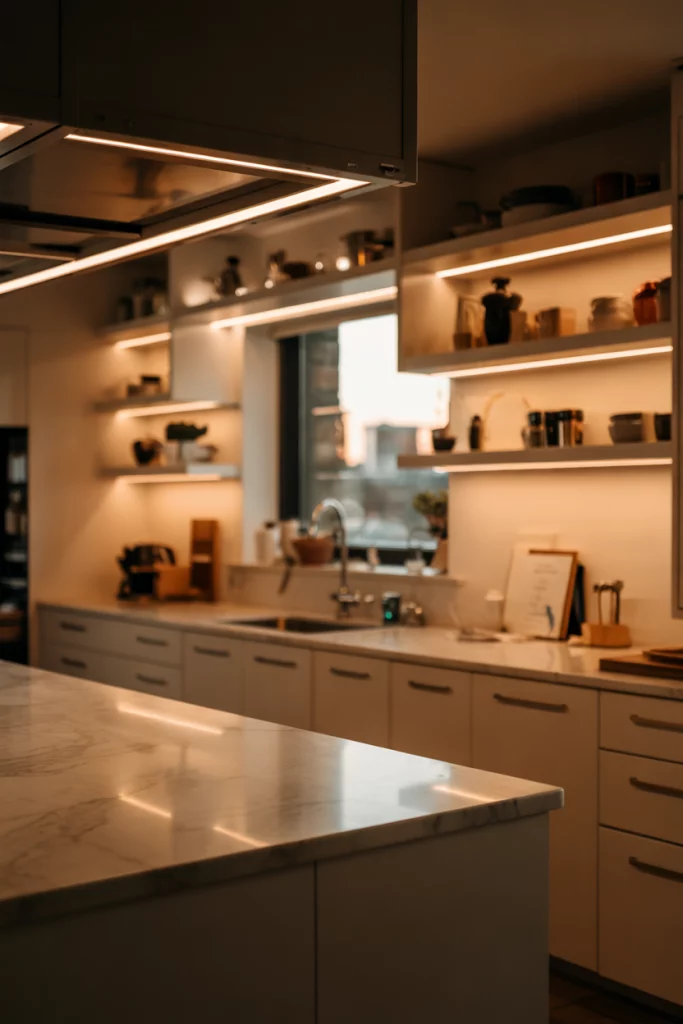 Lighting now adapts like a playlist—bright for chopping, amber for wine night. A cozy feel comes from layered LEDs under shelves, inside drawers, and even toe-kicks. One client said her kitchen “stopped feeling like a hospital and started feeling like a lounge” after adding tunable light temperatures.
